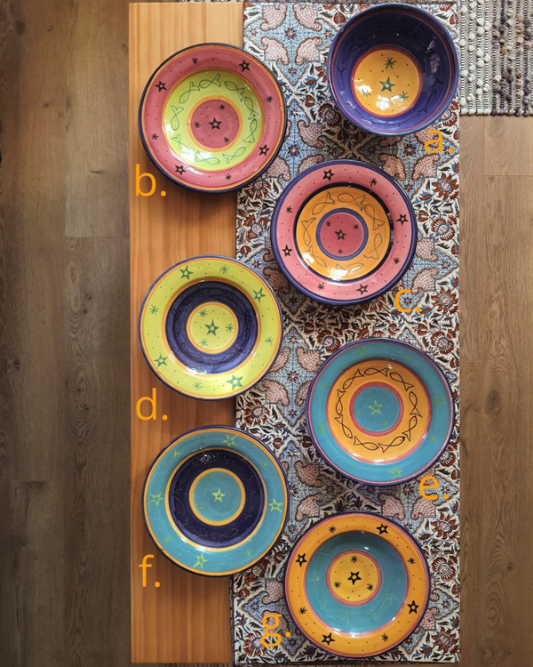 Perfect om te gebruiken als stijlvol eetgerei of als decoratief kunstwerk aan de muur, waarmee je in elke ruimte een unieke flair creëert door die prachtige patronen en levendige kleuren. 🌟