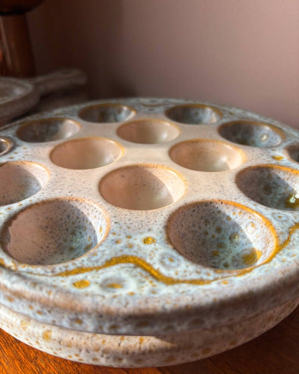 Deze schalen - in de stijl van Jean Austruy / Vallauris - zijn natuurlijk perfect voor het serveren van escargots, maar zijn ook erg leuk om kleine amuses op te serveren. ✨